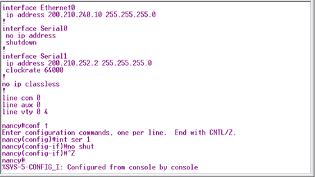 Lo siguiente es configurar las interfaces ethernet0 y Serial1, esto para poder establecer la conexion con las otras redes: